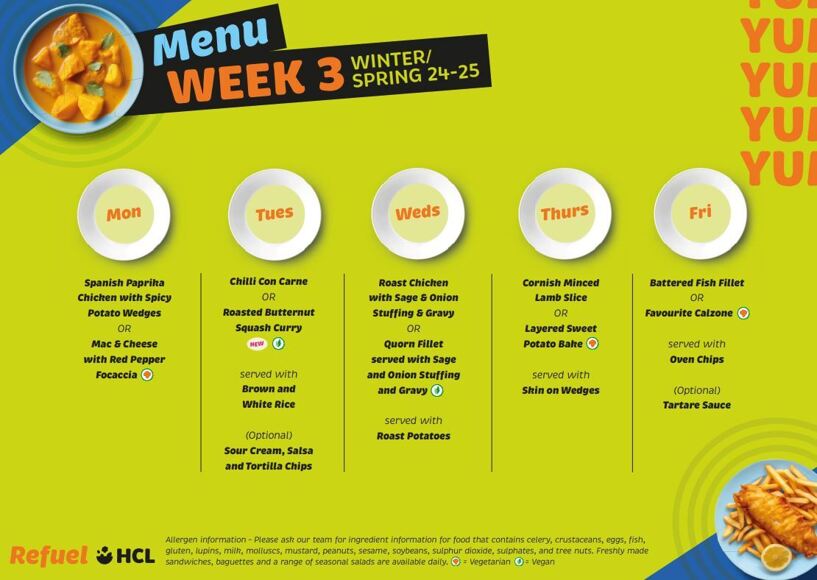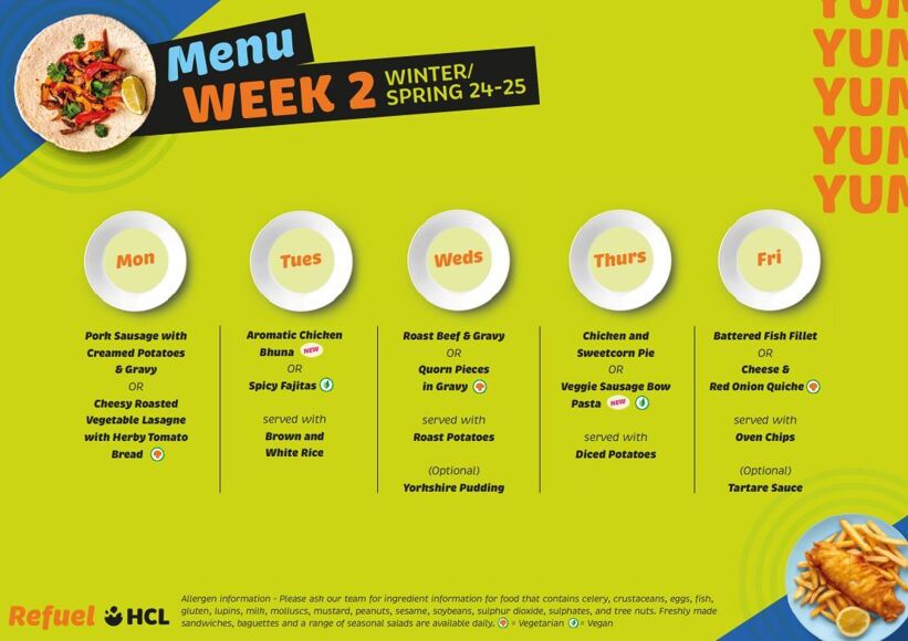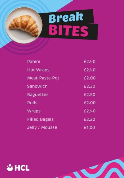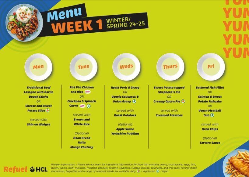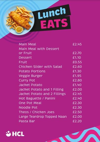 We provide daily a choice of a main meal and a pudding. We also offer meal deals. For example, a salad, jacket potato and filling, pasta dish or hot meal with either a pudding, small yoghurt, fruit pot or a sandwich meal deal. Fresh water is available from the various dispensers around the school.